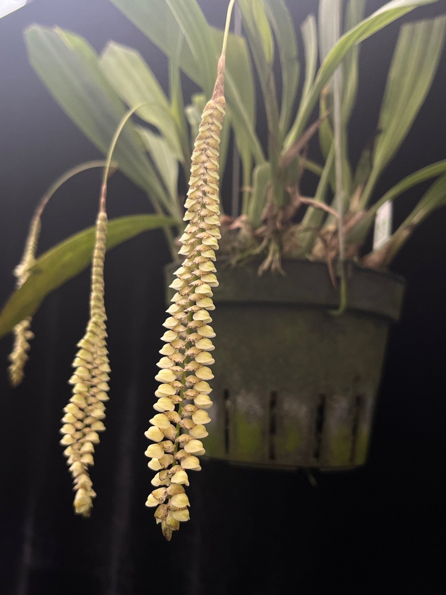 This species prefers intermediate-warm conditions, bright diffused light, and should be kept drier in the winter.